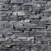 Prestige Stone's Pro Stack Stone panels feature thin stacked stones in varying lengths and thicknesses, tightly fitted with no visible joints. The stones have a natural, rough texture with chiseled edges, creating depth and shadow. These panels do not require mortar, making installation a breeze.